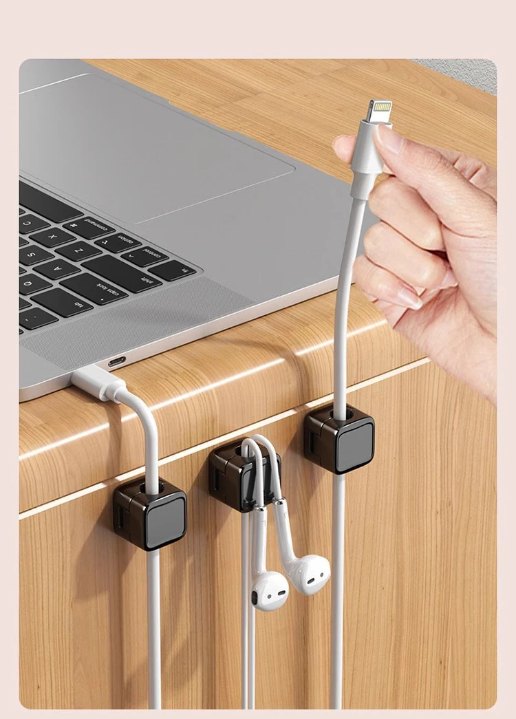 -1- Este é um suporte de cabo magnético dedicado a resolver os problemas e riscos de segurança causados pelo emaranhamento de vários fios, ajudando os usuários a criar um ambiente de mesa e de vida limpo e ordenado.